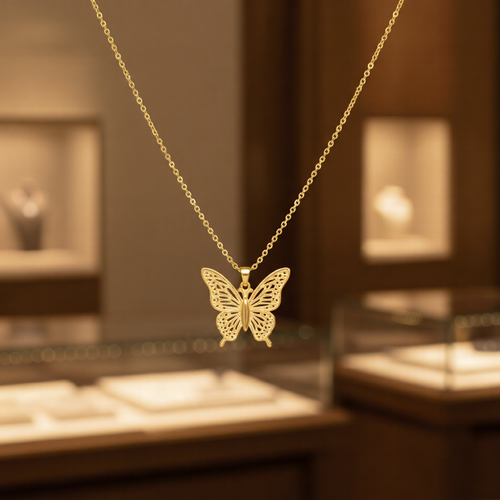 Add timeless elegance to your jewelry collection with this 18K Gold Butterfly Pendant Necklace – Luxe Gold Edition, a beautifully crafted piece designed to elevate everyday style. Featuring a delicate butterfly pendant suspended from a...