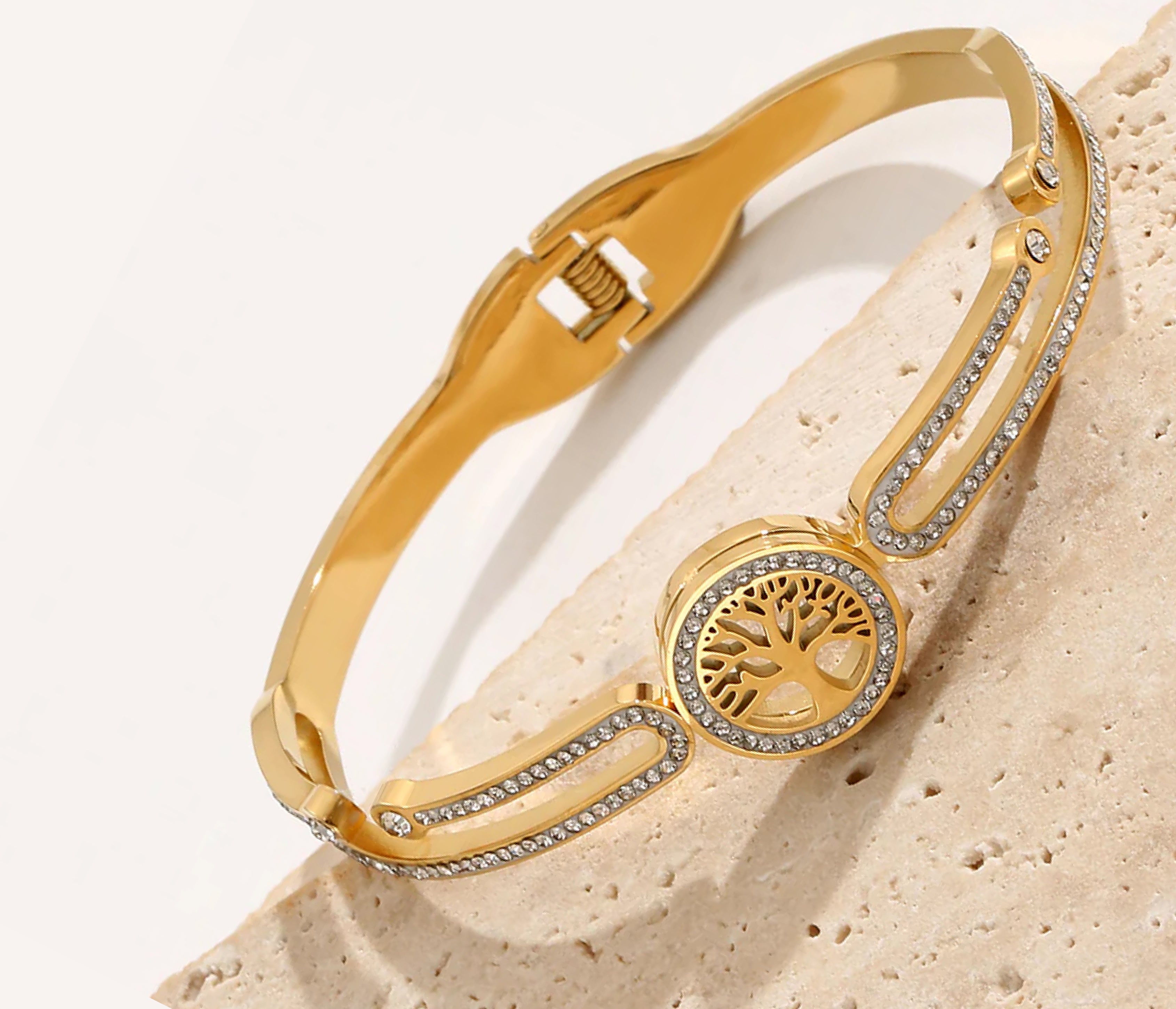 Discover timeless elegance with this 18K gold-plated stainless steel Life Tree cuff bracelet, designed to symbolise growth, strength, and connection. Featuring a refined Tree of Life design accented with sparkling zirconia stones, this bracelet blends...